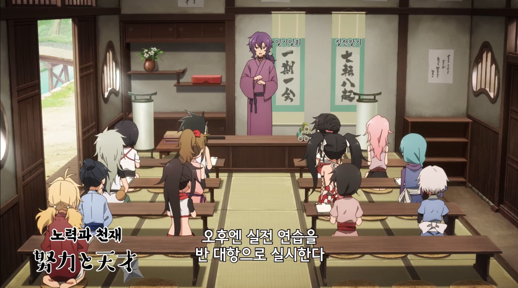 쿠노이치가 되기위해 매일 공부와 수련을 하고있는 주인공 츠바키