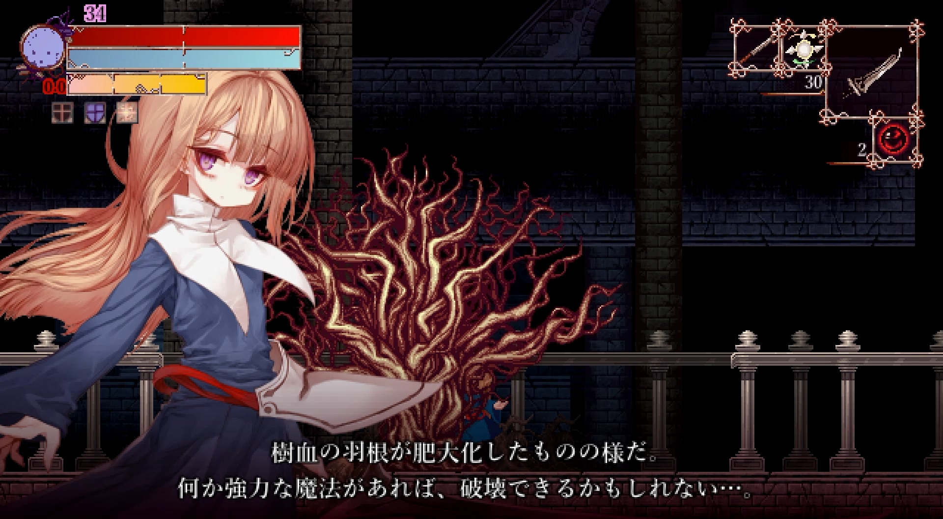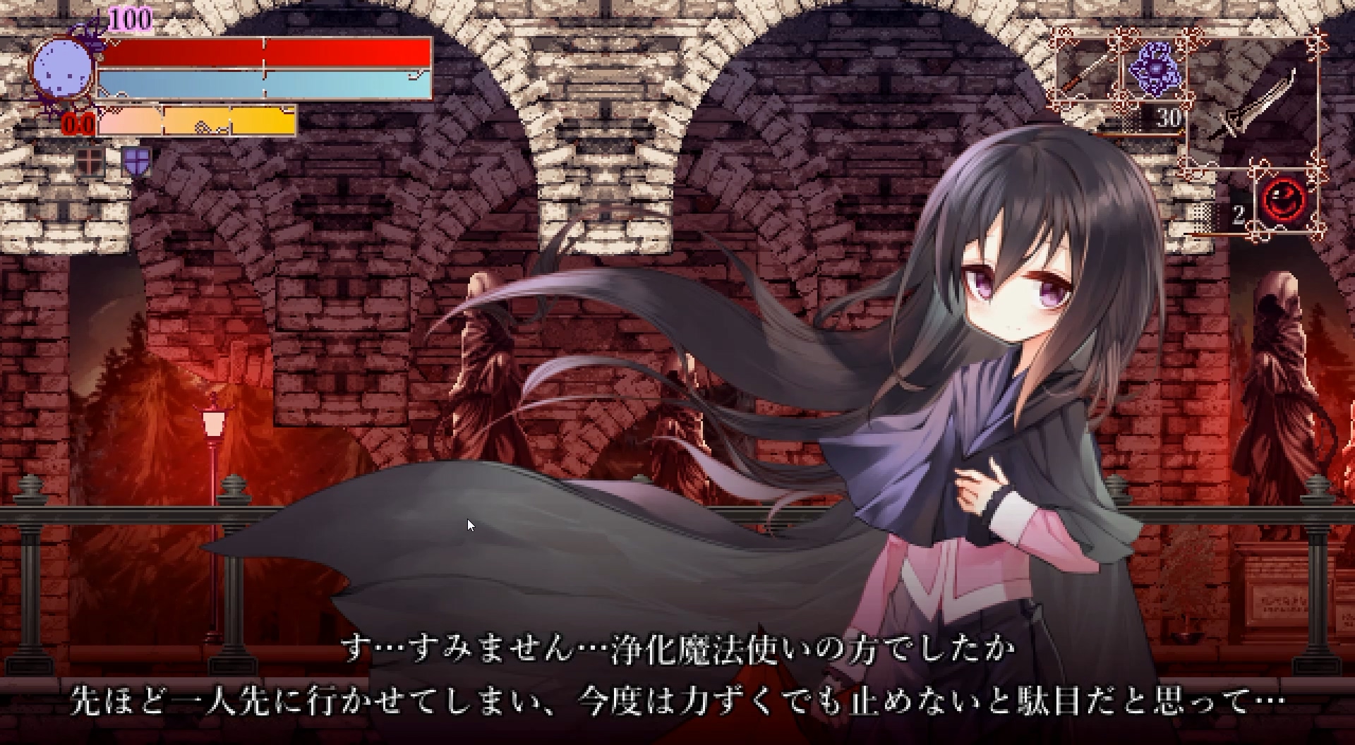 무표정한 표정이 특징인 마법검사소녀 주인공이 이 폐성으로 혼자 찾아오는 것으로 게임이 시작.