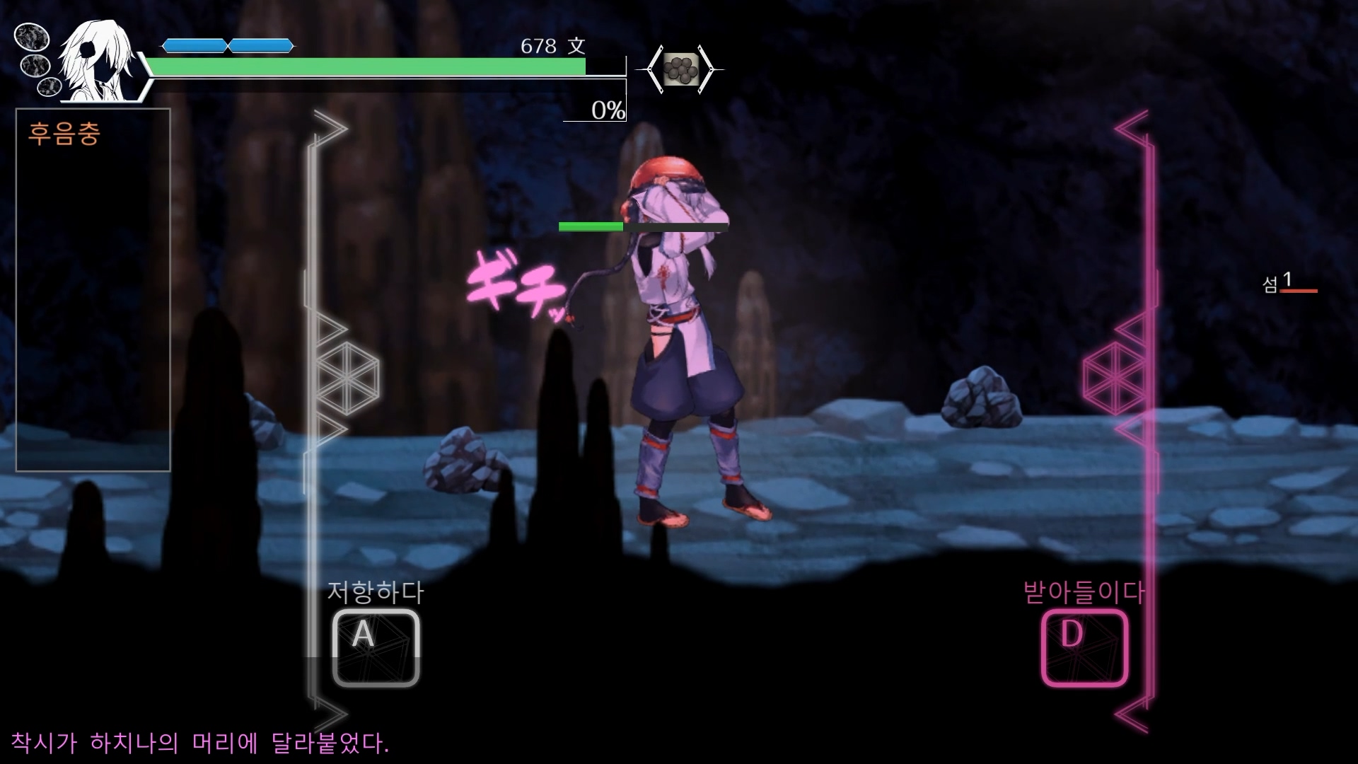 그렇게 몬스터에게 한번 당하고 나니 후음충이라는 상태이상이 하나 생김