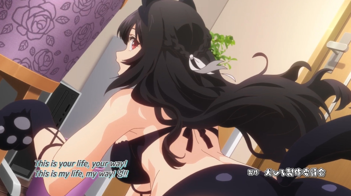 허벅지사이에 주인공을 끼우지않나 온갖 노골적이고 야한 서비스씬 주구장창 보여주는 애니임