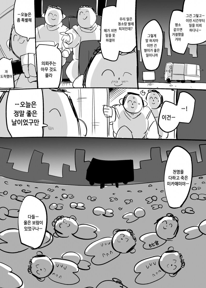 미카라는 캐릭터의 실장에 수많은 매미들 폭사