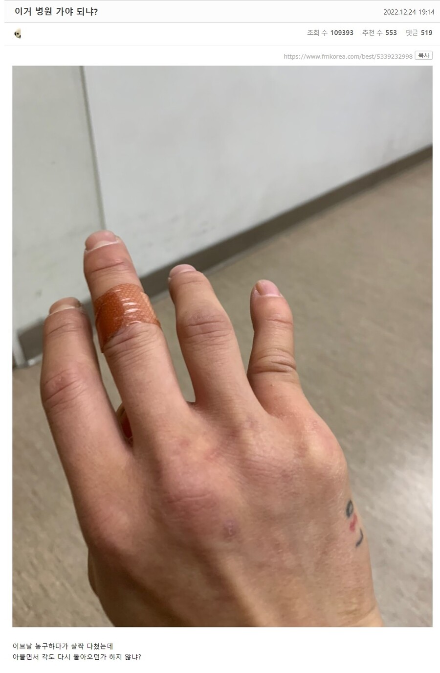 렌치로 다시 꺾인 손가락 필뻔한 사람