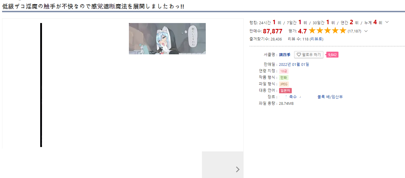 분명 작년에 나온 동인지인데도 아직도 랭킹1위 먹는등 인기가 상당함