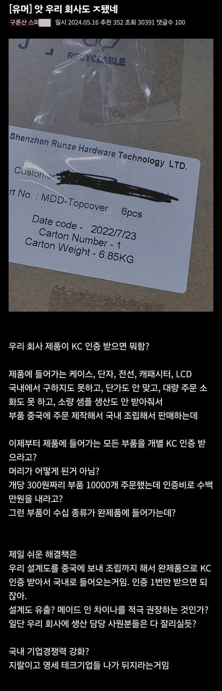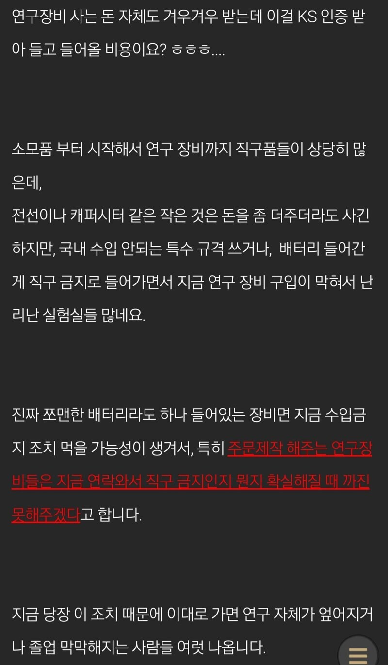 직구로 부품 댕겨오는 사업자들 전부 비상이고