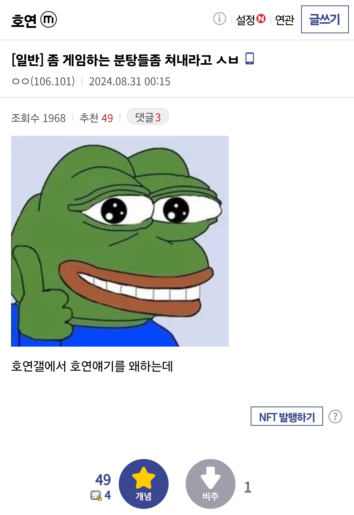 워낙 이렇다보니 호연갤은 여전히 호연하는 사람만 없고 오직 분탕뿐임
