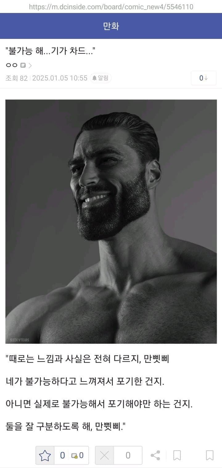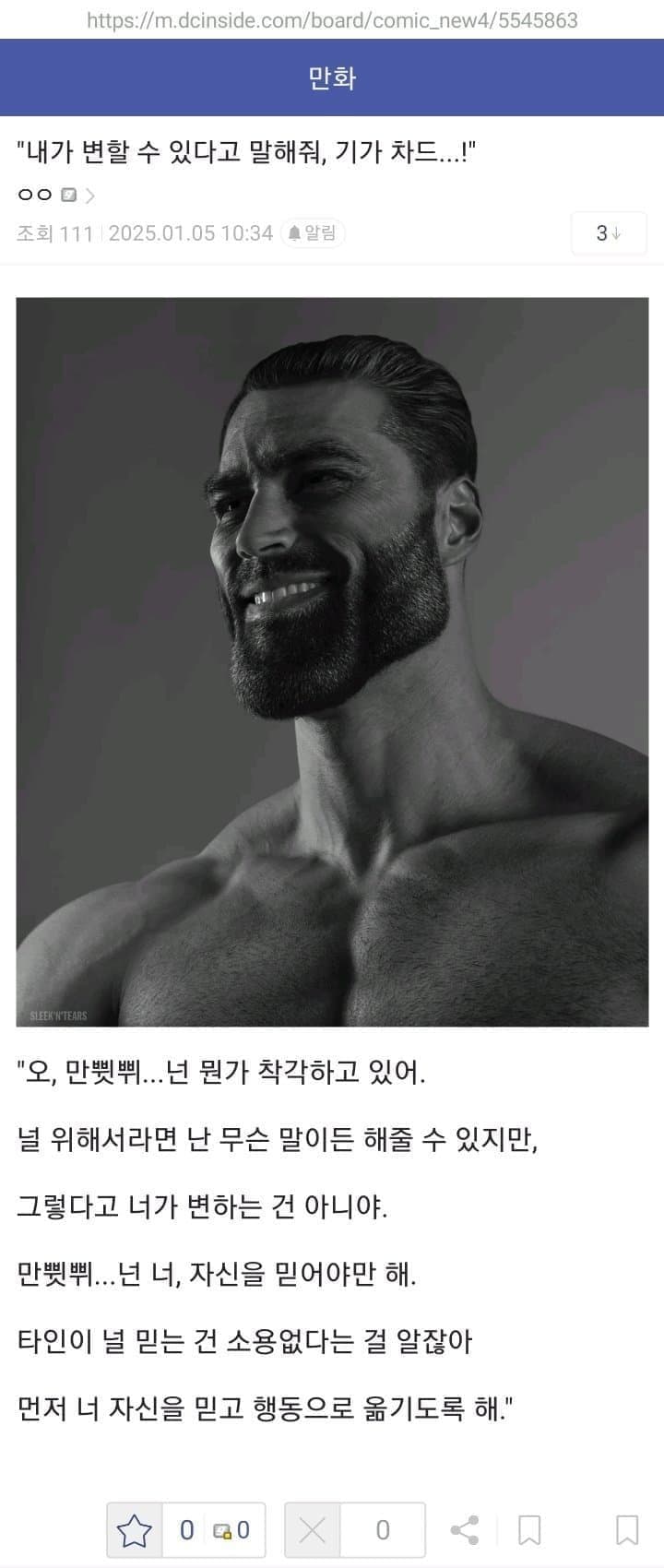 대충 작성자와 작성자가 상상으로 만들어낸 기가 차드와의 대화를 상상으로 작성한 내용의 글로,