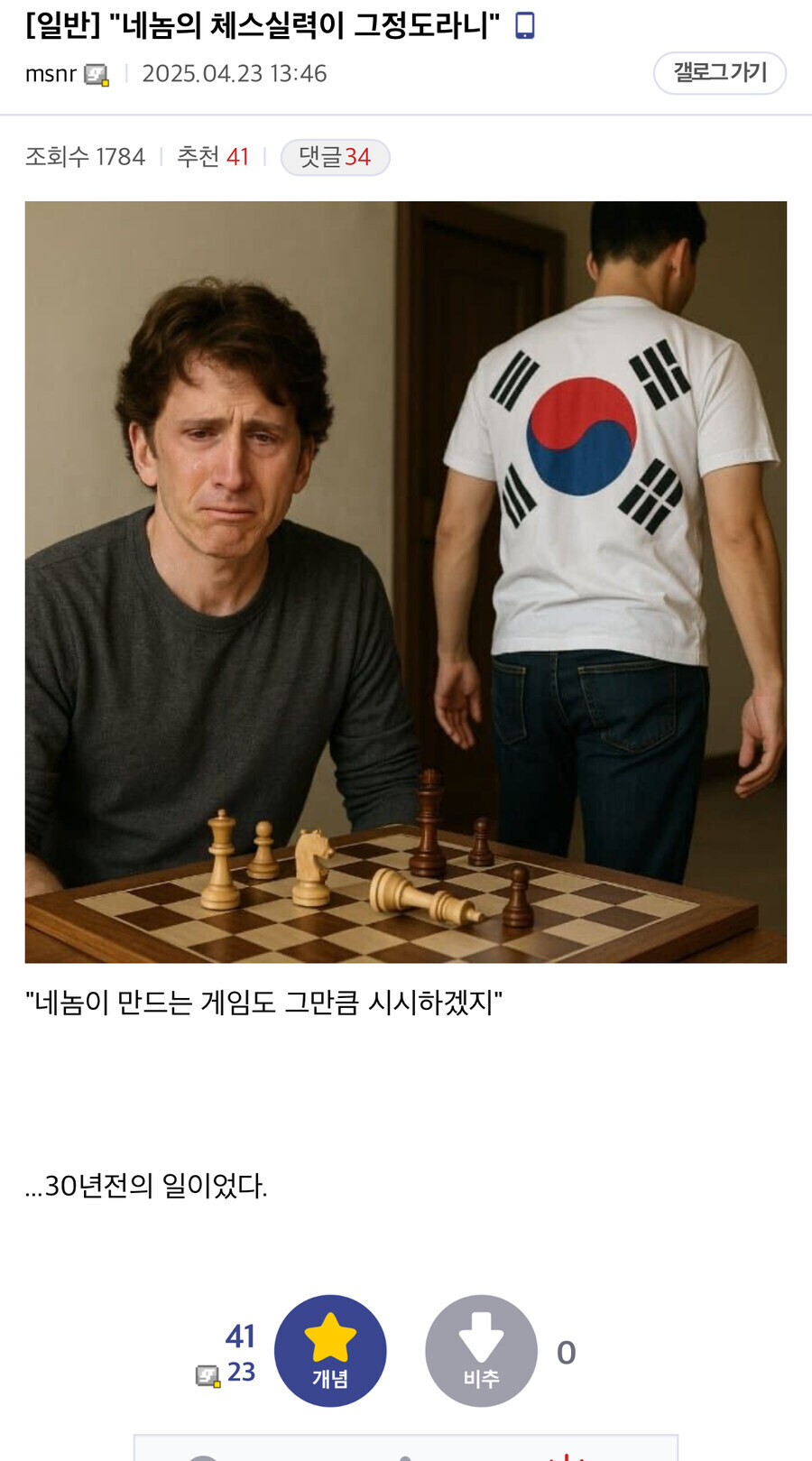 아니면 30년전에 한국인한테 체스로 뚜드려 맞았던 적이 있거나