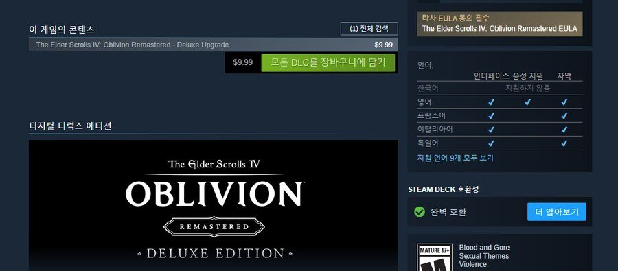 뜬금없이 엘더4 오블리비언 리마스터가 발매됨