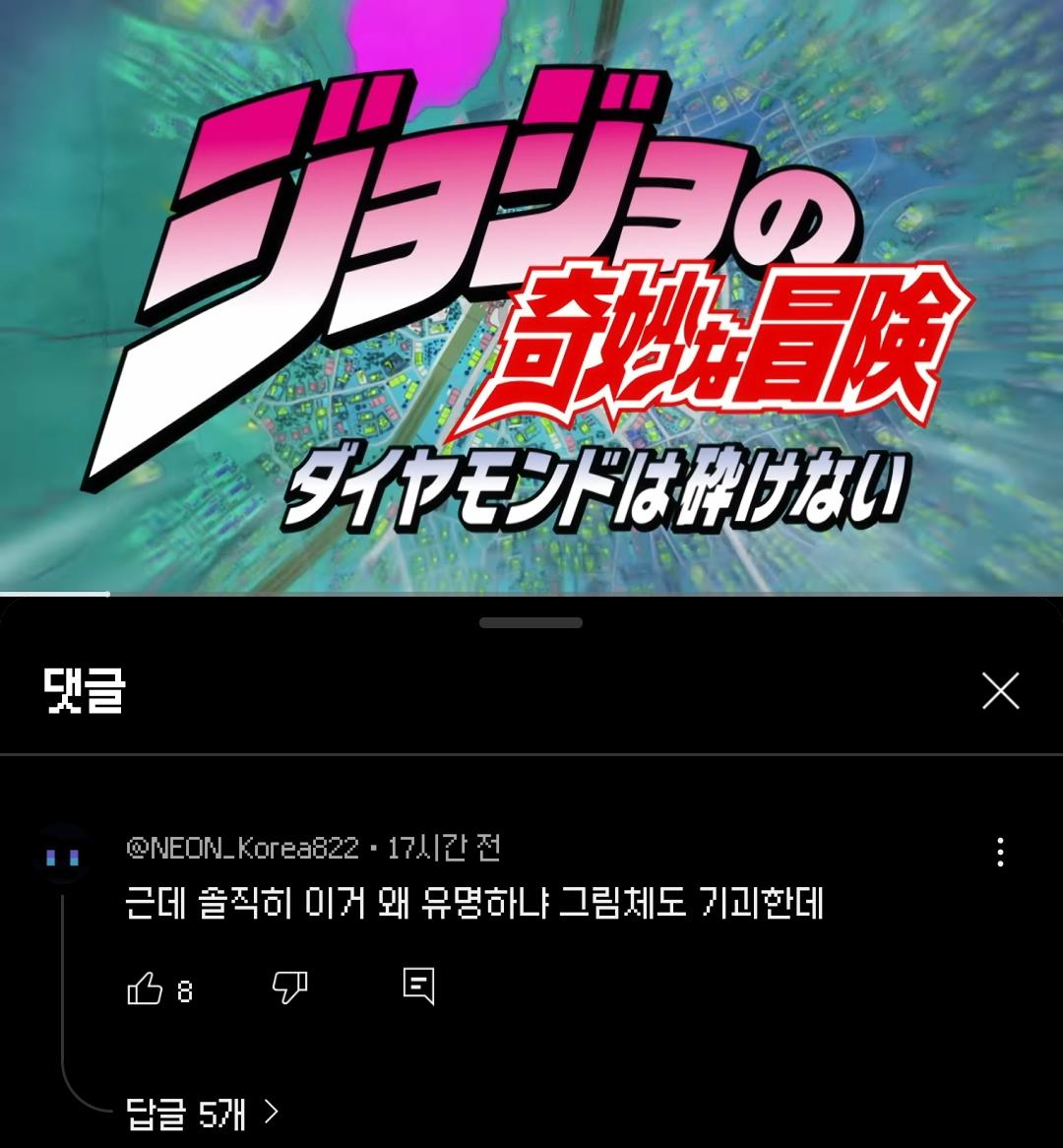 최근 뮤즈 애니 코리아가 유튜브에서 죠죠 시리즈 공식업로드 중이라서 간만에 다시 봐버림.