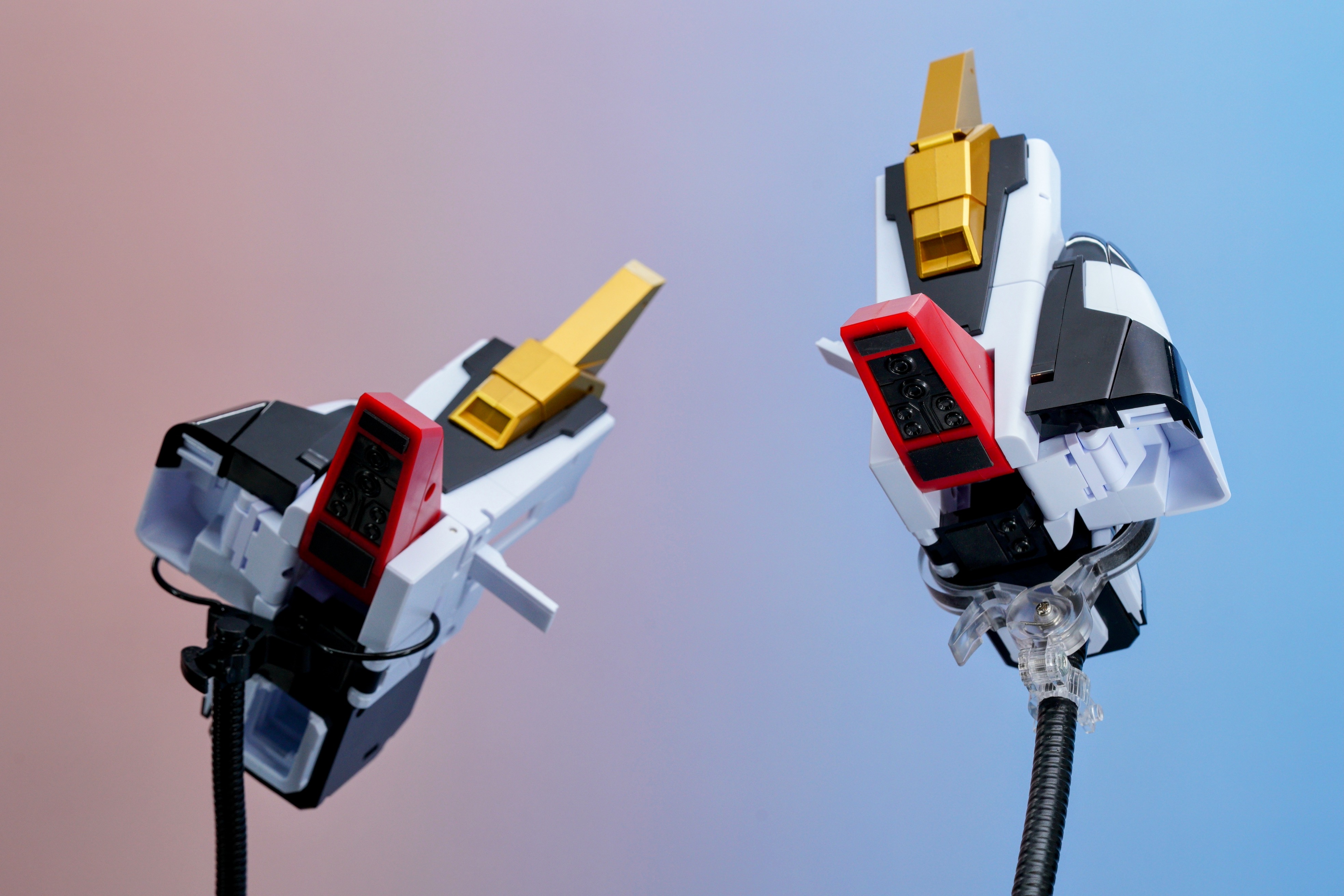 왼쪽이 수퍼 선가드(그랑버드)와 블래스터 제트, 오른쪽이 선가드(파이버드)와 플레임 블래스터