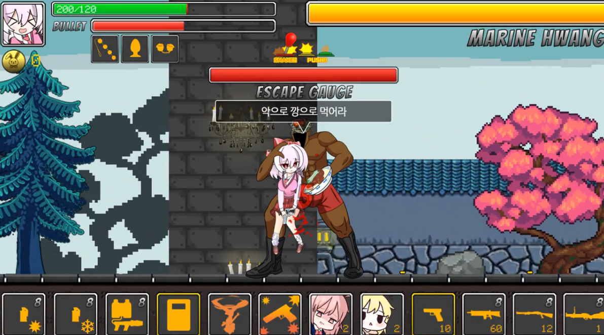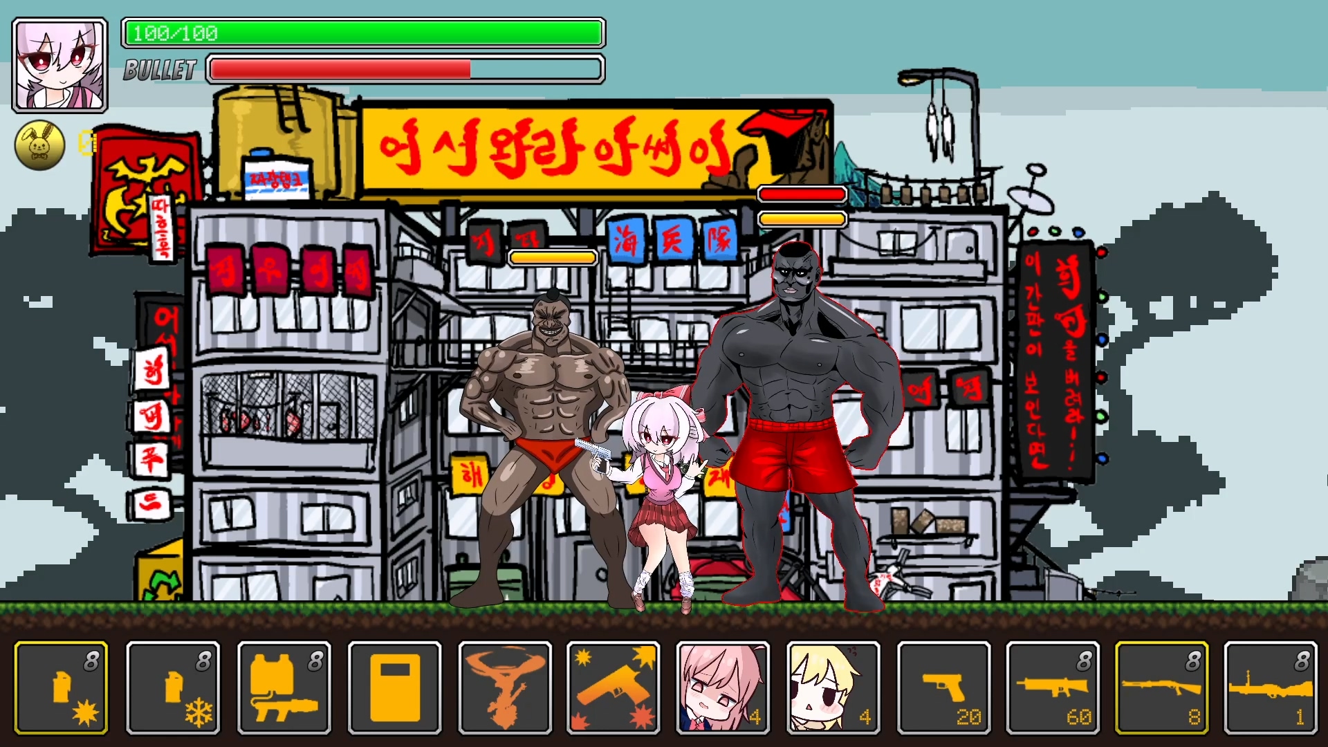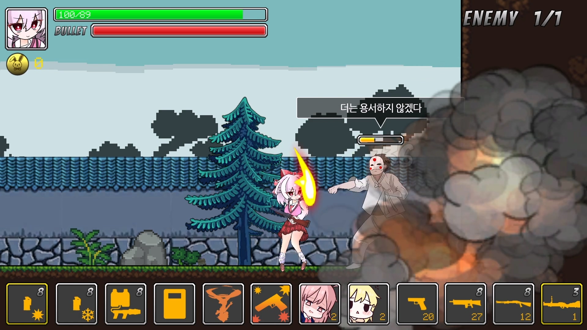 아무튼 주어진 무기로 나오는 오른쪽에 있는 적들을 처리해나가는 게임인데