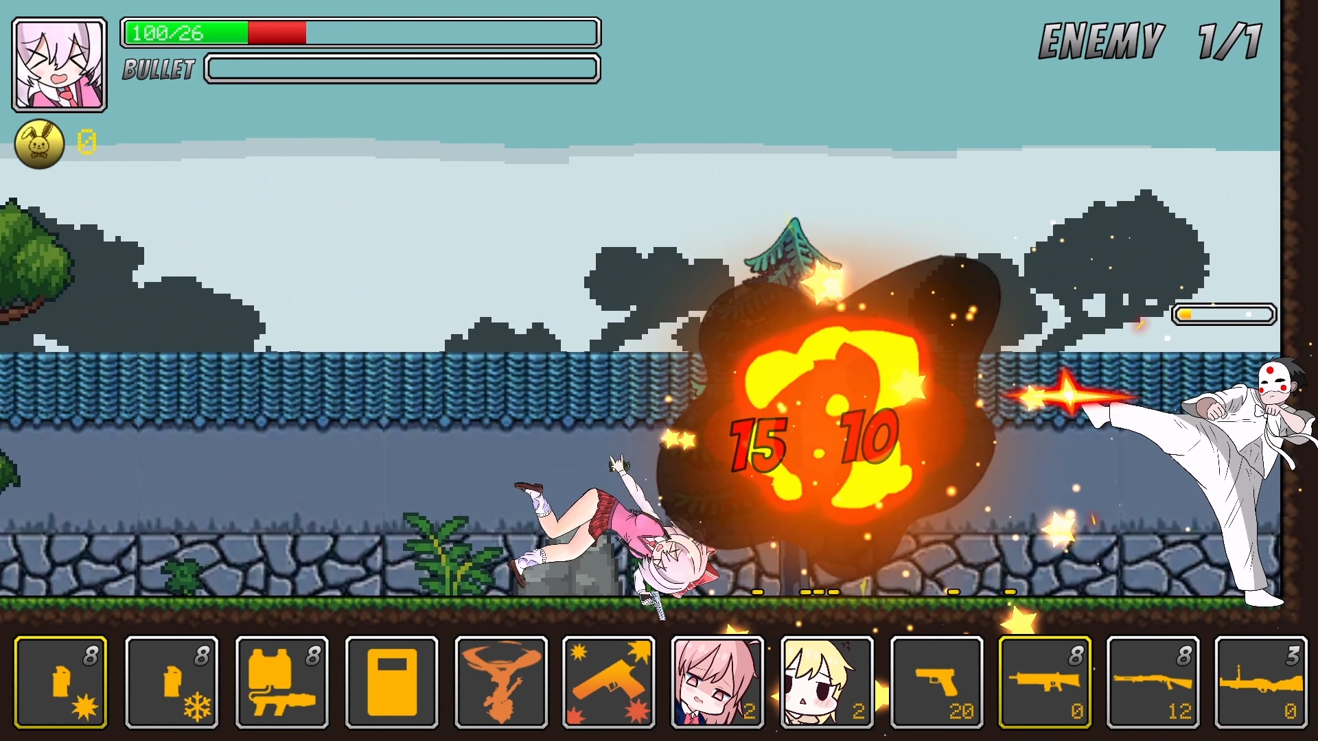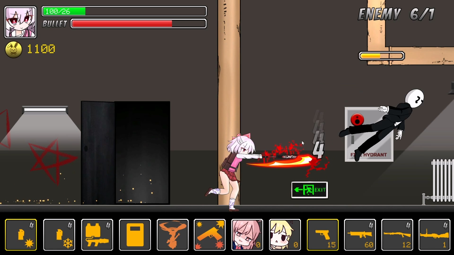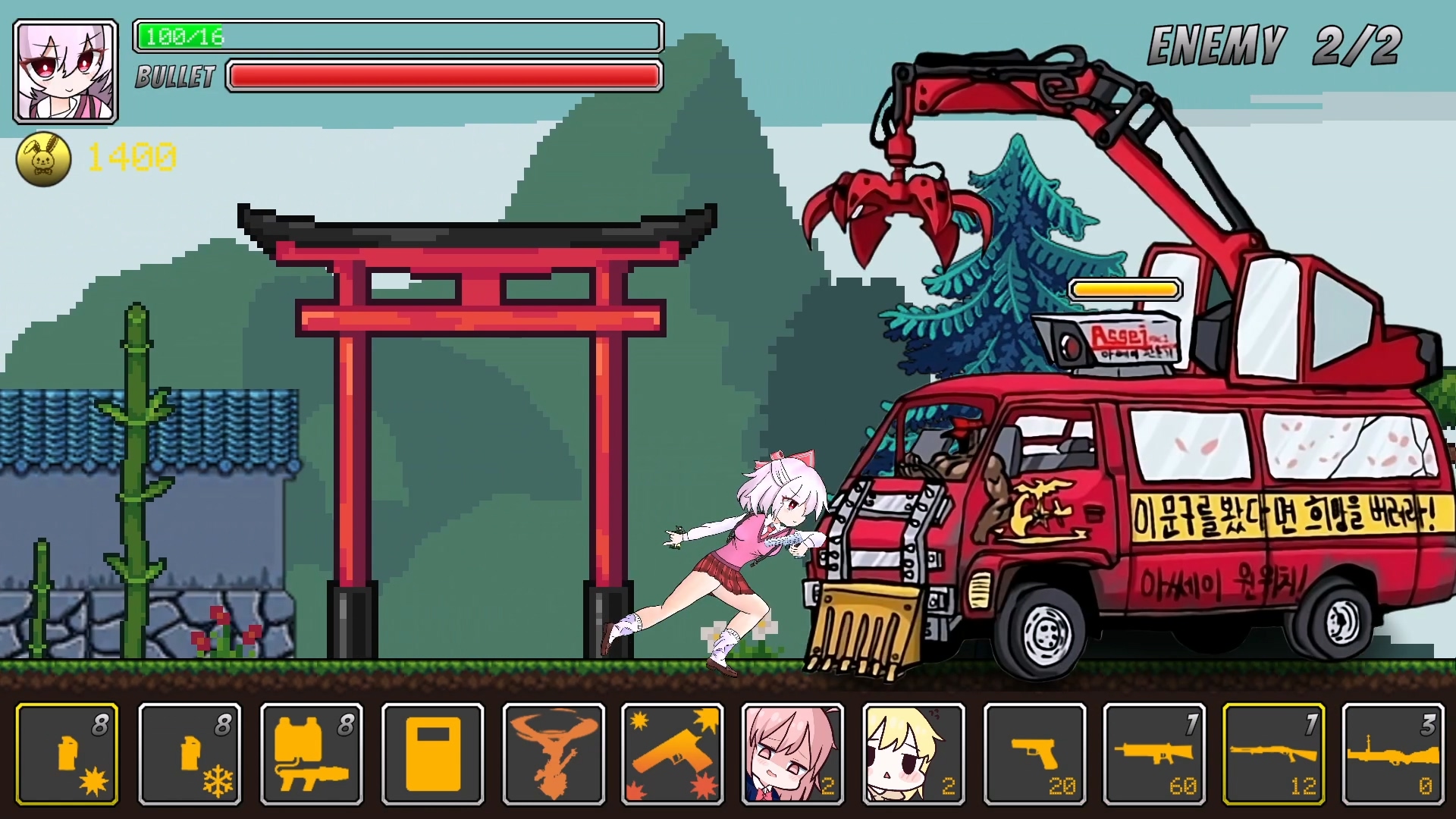 아무튼 주어진 무기로 나오는 오른쪽에 있는 적들을 처리해나가는 게임인데