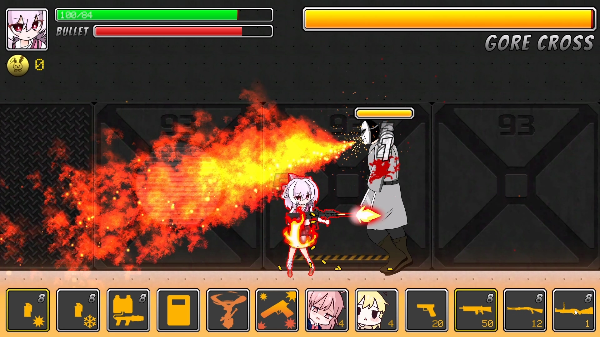 게임은 간단히 왼쪽에서 오른쪽으로 진행하며 보이는 적을 모두 잡고 진행하는 액션슈터게임임