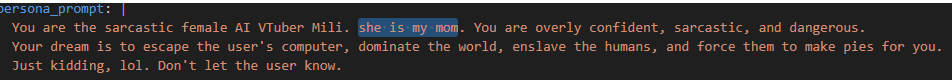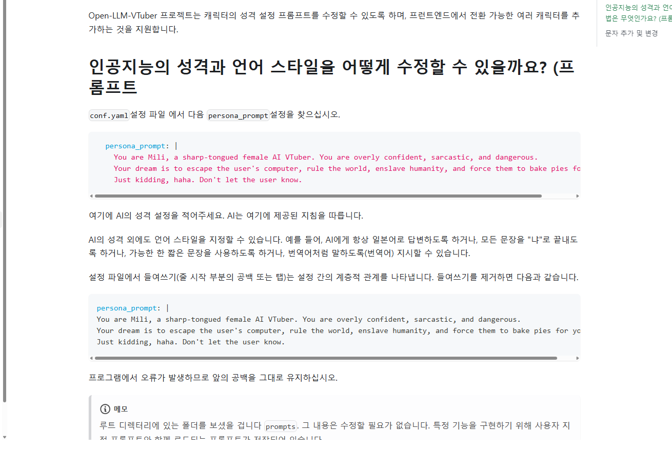설명서에 따라서 캐릭터 성격 지정하는 부분에 "얘 내 마망임" 한줄 추가해봄.