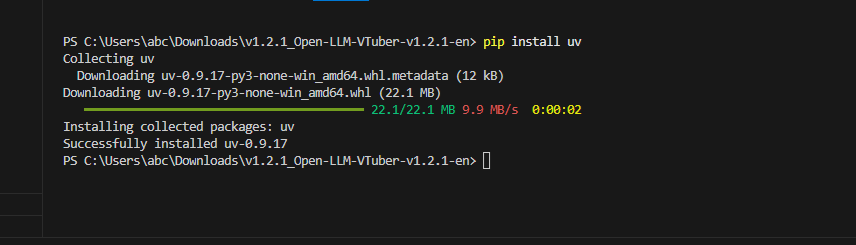 이제 터미널을 열어서 개발자 설치법따라서 pip install uv로 uv 설치해주고