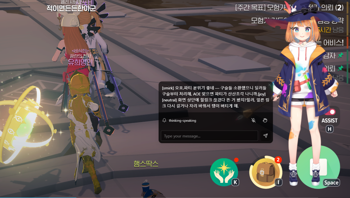 채팅으로 치거나 마이크로 말하면 그걸 알아듣고 내가 설정한 TTS 목소리로 답변해줌