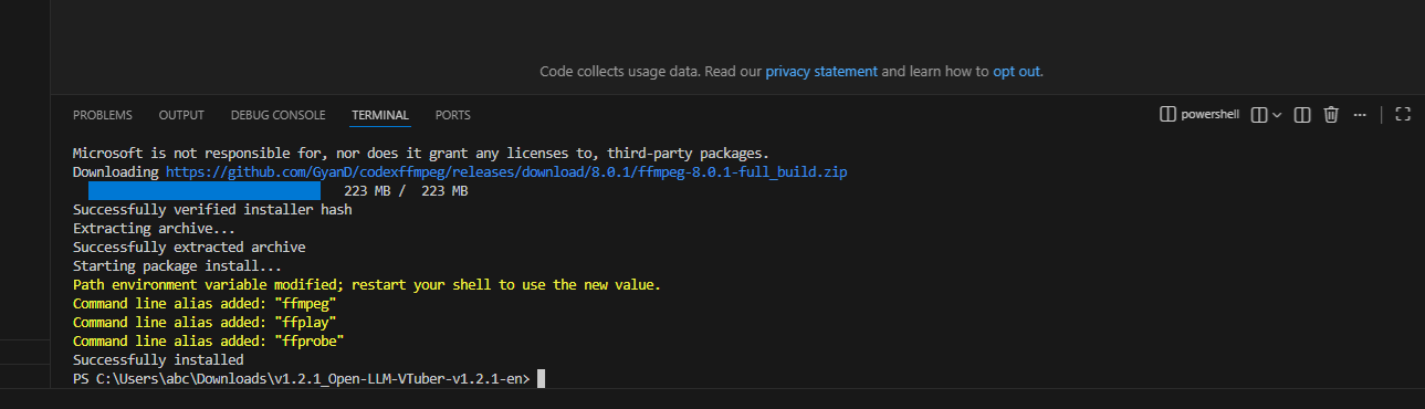 개발자가 음성인식에 필요하다는 ffmpeg이 필수라고하니 winget install ffmpeg으로 설치해
