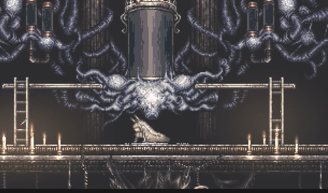 실험실에서 계속 진행하면 갑자기 문지기로 보이는 괴물이 주인공을 습격하는데
