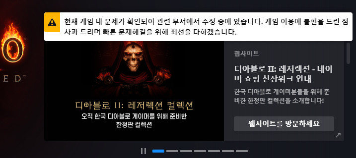 디아2의 누구나 겪었던 접속불가현상마저도 리마스터 되버린 셈임