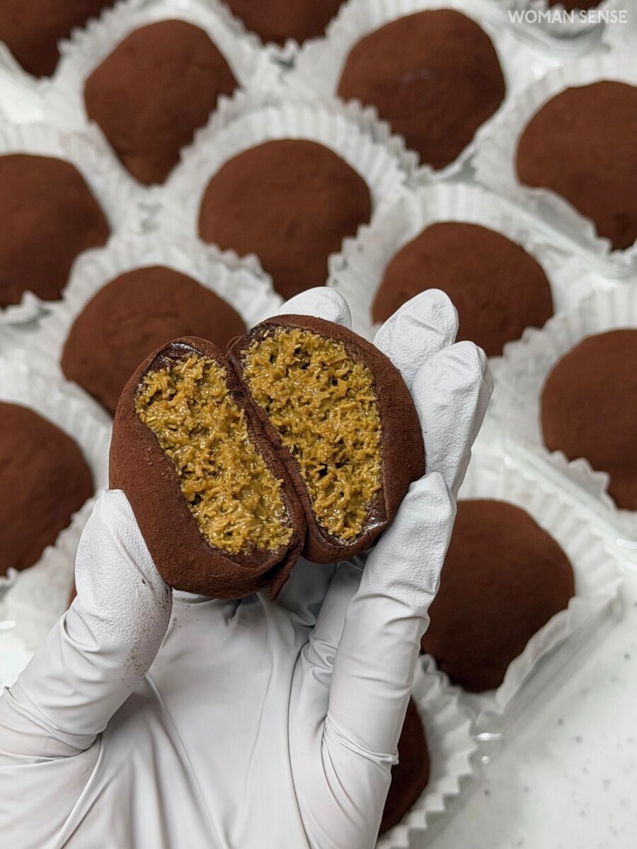 씹었을때 마시멜로우의 쫀득한 식감과 안으로는 피스타치오와 아삭한 카다이프의 촉감이 특징인데