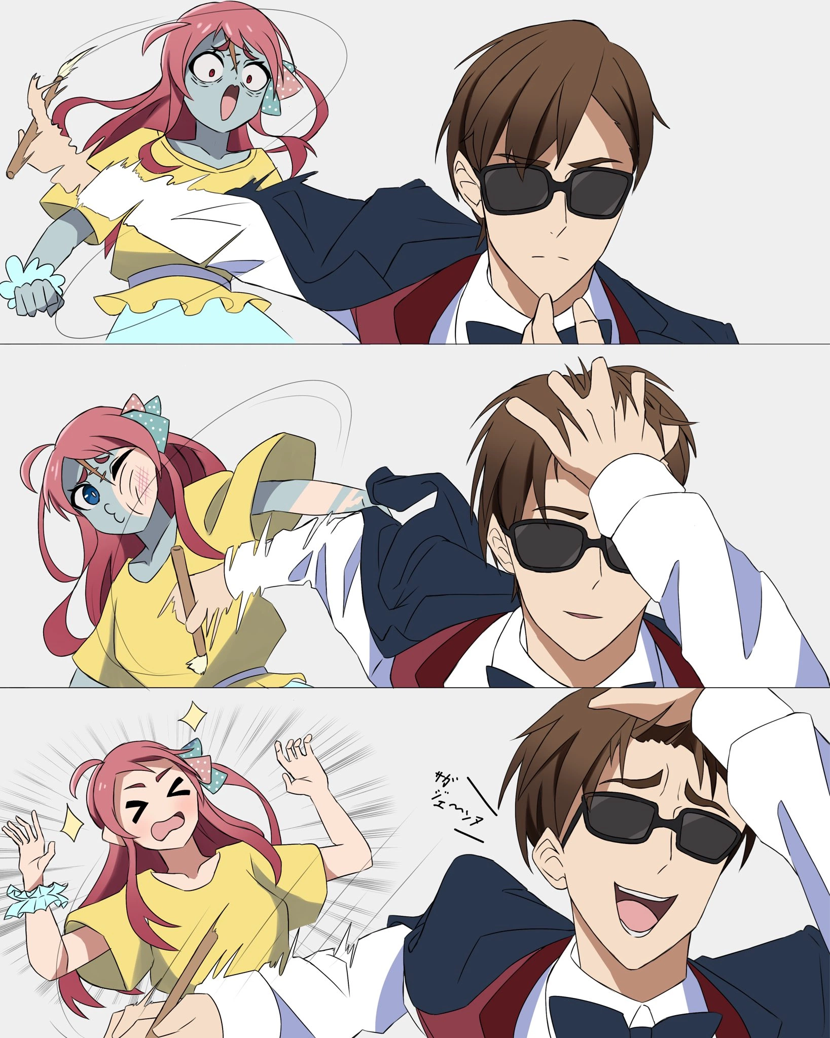 반대쪽 손으로는 보지도않고 일방적으로 쵸소우를 패는 장면이 상당히 임팩트가 있었는지 인터넷에서 밈이 됨