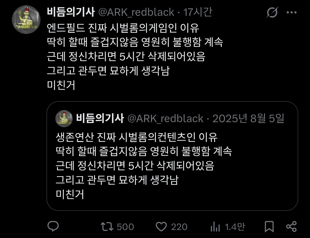 그대로 블로그하는것도 까먹고 그냥 눈뜨고 엔드필드 출근 퇴근후 엔드필드만 반복하다가 지금이 되버림