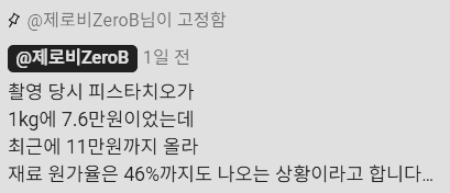 심지어 이 짤도 2주일 전거라 피스타치오의 가격이 지금 더 뛰어버린 상황