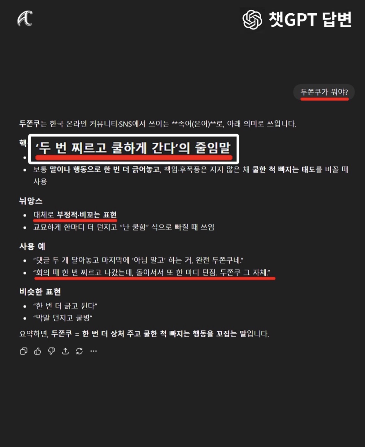 뭐 무슨 두번 찌르고 쿨하게 간다는 살벌한 단어의 줄임말인가 싶을정도로