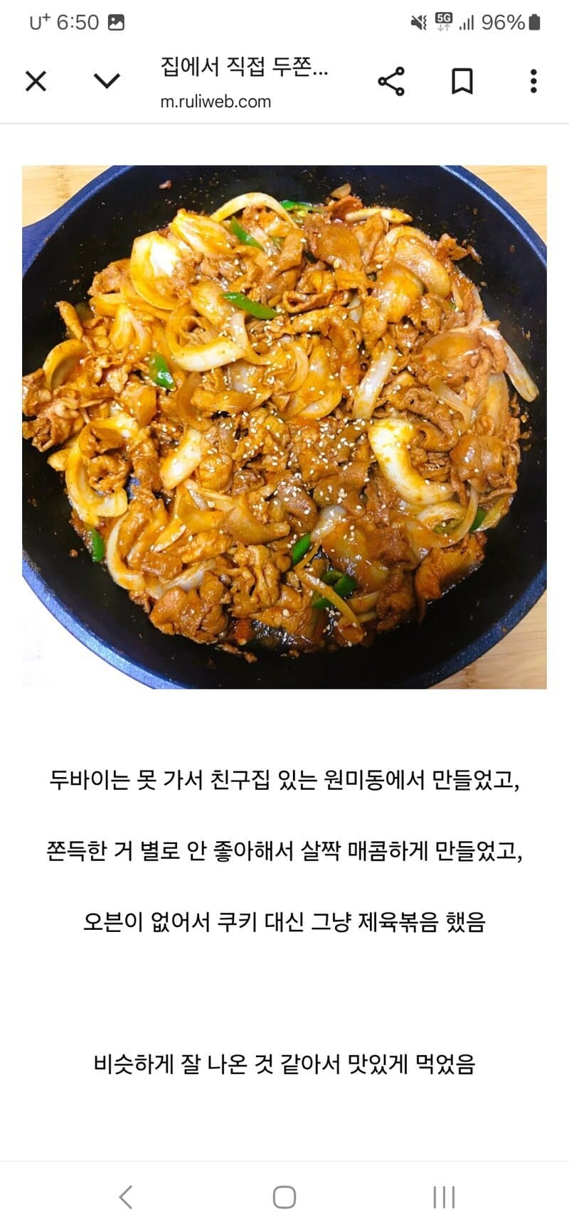 두바이 쫀득 쿠키 만들려다 코리안 매콤 제육을 만들어버리는 참사가 일어남