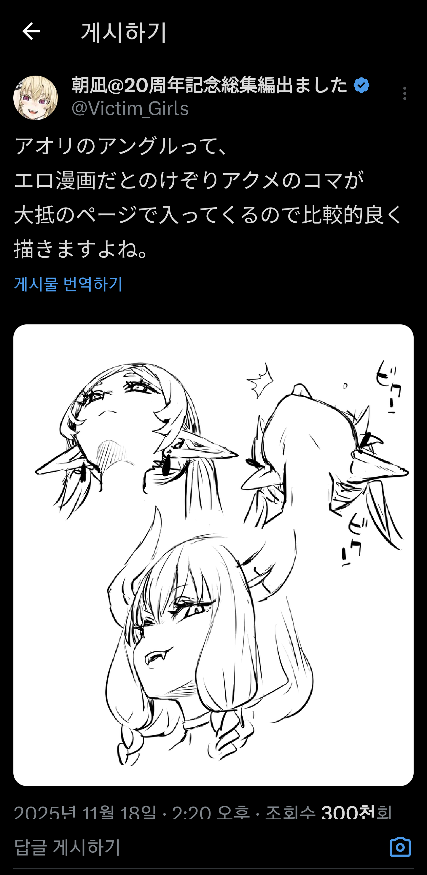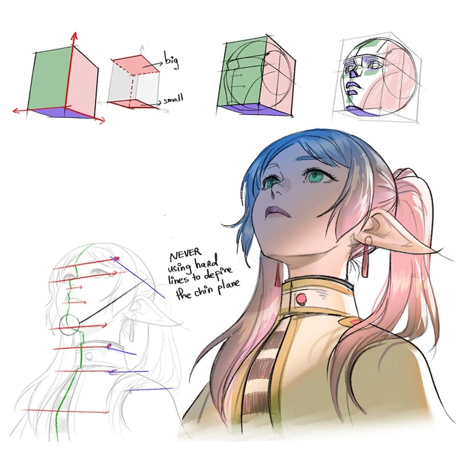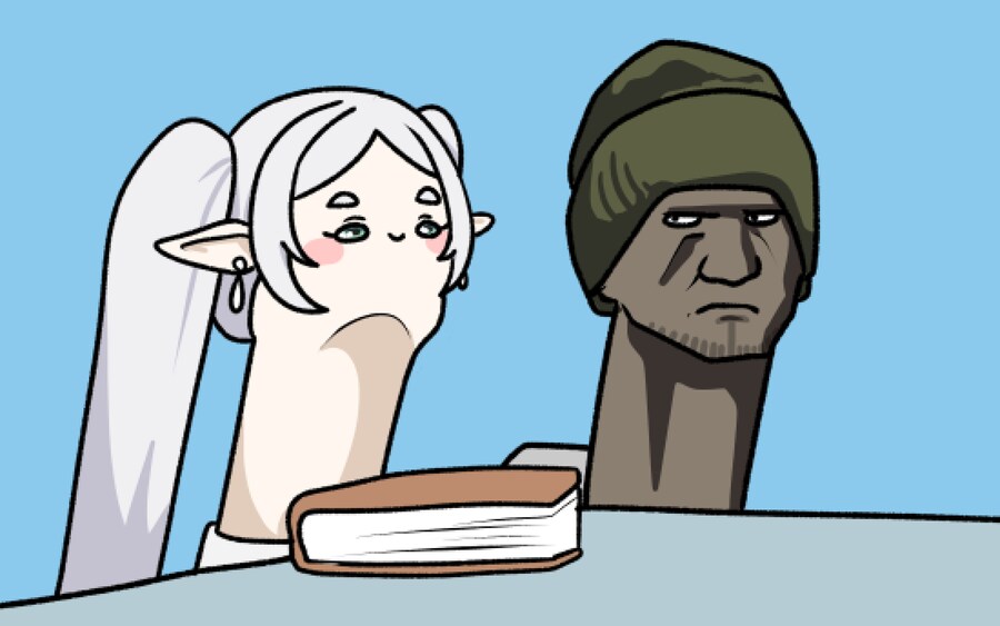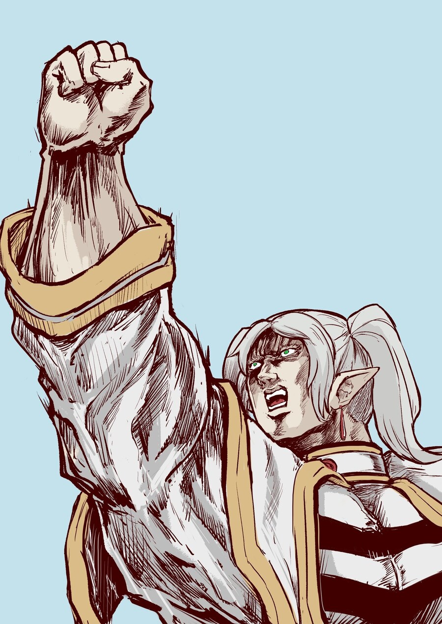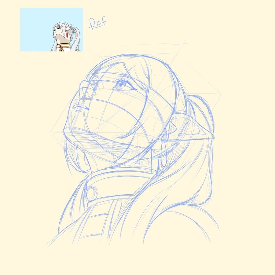 레딧에 올라왔던 프리렌을 그리면서 캐릭터가 아래에서 위를 쳐다보는 로우앵글의 구도가 어렵다는 그림 뉴비