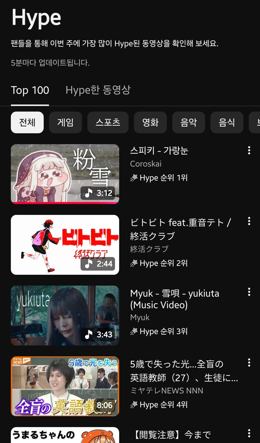 그냥 유튜브 쇼츠같은게 큼지막하게 튀어나옴